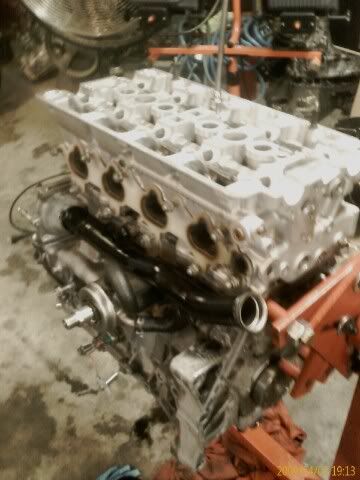 It's a 94DX milled head, A6 block with a reused HG, DelSol Si intake mani, injectors, and a B18 TB, and the lovely CX trans"trashed". Motor is in a CRX now with the Si trans it belongs to.